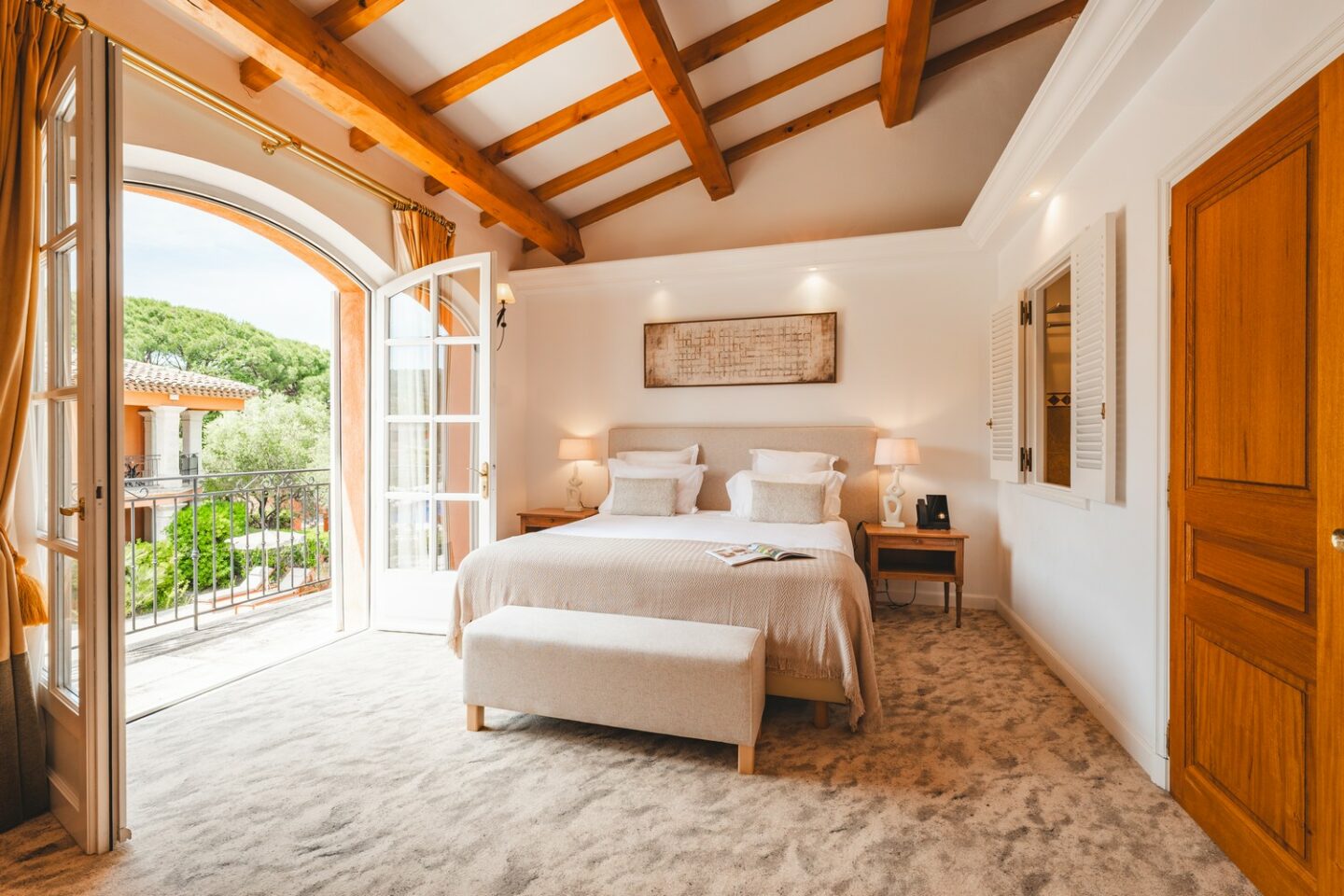 À seulement 200 mètres de la plage de la Bouillabaisse et à quelques minutes du centre de Saint-Tropez, le Domaine de l’Astragale s’impose comme l’un des secrets les mieux gardés du golfe. Dans un parc où se mêlent pins parasols, oliviers et lauriers roses, ce refuge cinq étoiles conjugue avec grâce l’esprit d’une maison provençale et les codes du luxe contemporain.