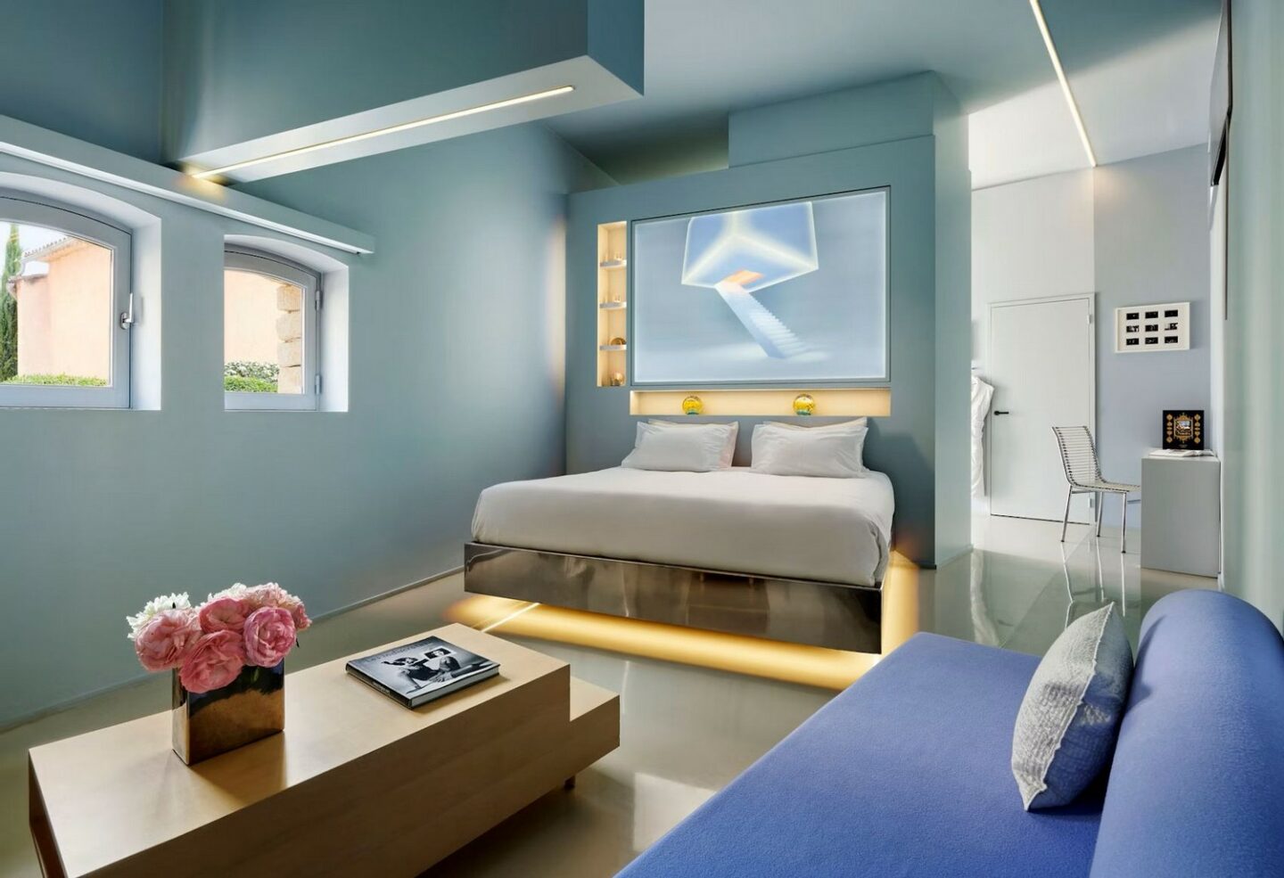 Ici, chaque séjour se vit comme une immersion : œuvres majeures, mobilier iconique, installations en plein air dialoguent avec la Provence éternelle. L’accueil, orchestré par Olivier et Patrizia Massart, cultive une élégance chaleureuse, loin des codes figés du palace. On déjeune sous un platane centenaire, on dîne face à une fresque monumentale de Castelbajac, et on s’endort dans une maison-galerie ouverte sur les étoiles.