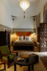 Le matin, le petit-déjeuner est déposé en silence à la porte, et est composé de produits fermiers, miel du domaine, pain chaud, ou encore fruits du potager. À midi, on flâne entre mer et maquis avant de rejoindre la plage confidentielle de Carataggio, accessible à pied. Le soir, le Chef imagine des dîners sur mesure, mettant à l’honneur les produits de Casa di Petra, la ferme familiale voisine. Et quand la nuit tombe, un verre de vin corse à la main, la douceur de vivre s’installe sous les oliviers.
